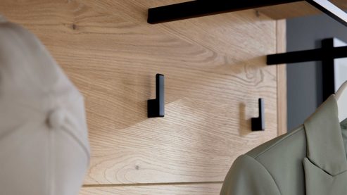 Wie alle Möbelstücke der Serie überzeugt auch diese Garderobe durch durchdachte Details: Schrönke mit leise schließenden Türen mit Softclose-Technologie sowie Schubladen mit Selbsteinzug bei den passenden Schränken sorgen für hohen Komfort im Alltag. Die Möbelstücke sind bereits fertig montiert und können direkt verwendet werden – ohne zeitaufwendigen Aufbau.