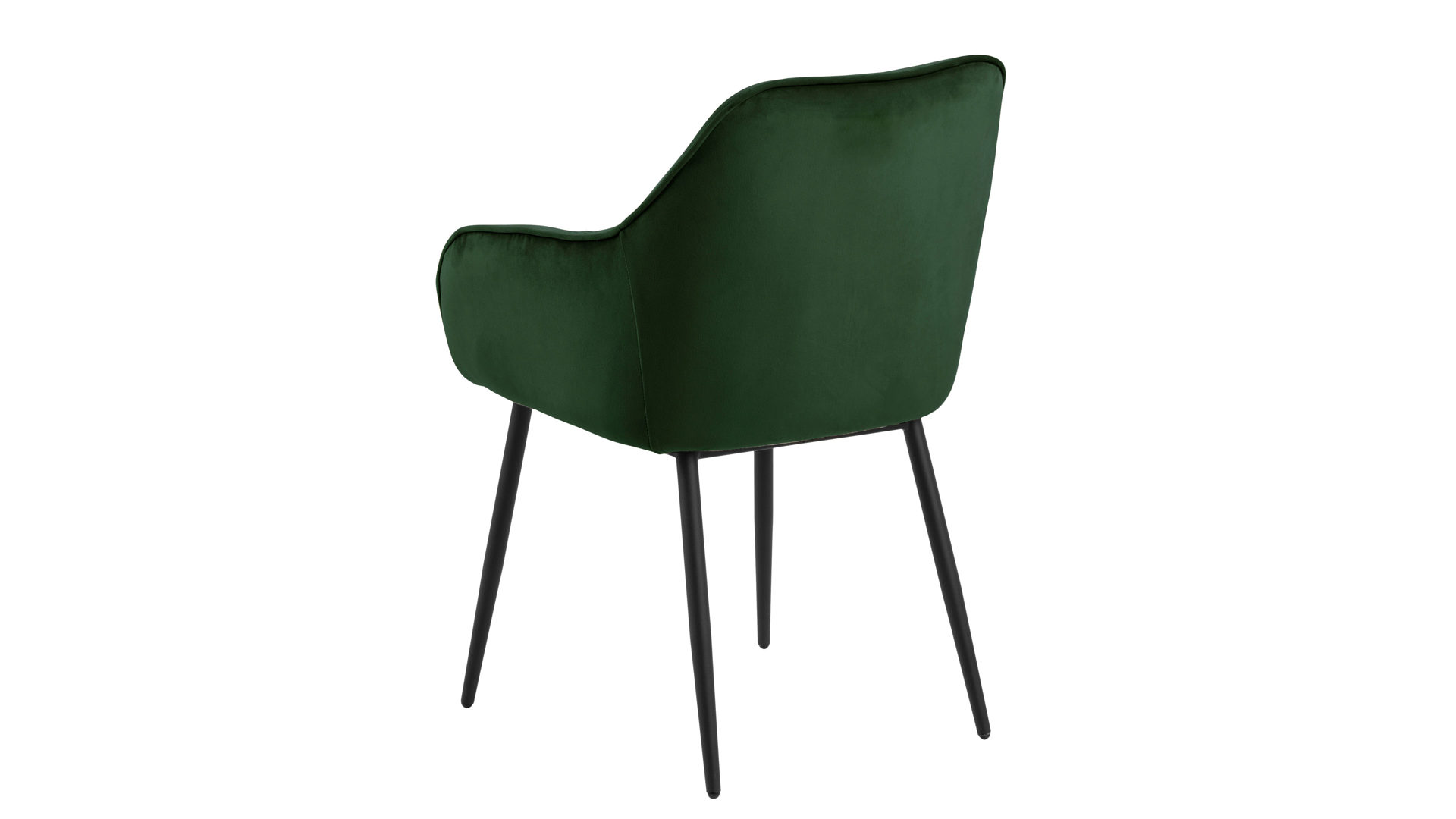 Dabei harmoniert der Polsterstuhl in seiner sanften Formensprache mit zahlreichen Einrichtungsstilen. Moderne Geradlinigkeit ergänzt er ebenso stimmig wie den beliebten Vintage-Trend. Auch farblich erlaubt der Esszimmerstuhl Brooke angenehme Freiheit beim Kombinieren: Dafür sorgt der waldgrüne Bezug Vic aus Samt, der die gesamte Sitzschale inklusive der bequemen Armlehnen weich umhüllt. Die rau pulverbeschichteten Metallfüße fließen in mattem Schwarz stimmig in das Gesamtbild ein.
