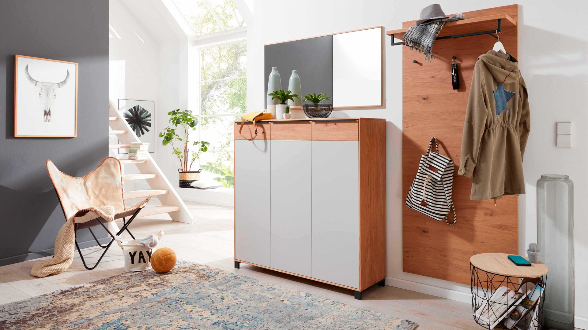 Das komplette Dielenmöbel-Set bietet dir funktionalen Stauraum, klare Linien und vielseitige Gestaltungsmöglichkeiten – perfekt für eine aufgeräumte, einladende Garderobe.