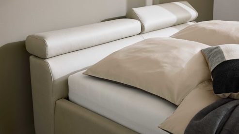 Die Interliving Polsterbett Serie 1422 steht für ein vielseitiges Polsterbettprogramm mit mehreren durchdachten Wahlmöglichkeiten. Dir stehen vier unterschiedliche Kopfteilvarianten zur Verfügung, wobei Modell B serienmäßig eine manuelle Kopfteilverstellung bietet. Darüber hinaus ist das Bettgestell in den Bettbreiten 140, 160, 180 und 200 cm erhältlich und optional auch in 220 cm Überlänge planbar. Drei wählbare Bettseitenhöhen und die verstellbaren Einlegetiefen geben dir zusätzlichen Spielraum bei der individuellen Planung.