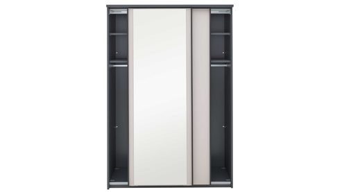Der Schwebetürenschrank aus der Interliving Jugendzimmer Serie 1701 verbindet modernes Design mit durchdachter Funktionalität und ist die perfekte Lösung für ein stilvolles und ordentliches Jugendzimmer. Der dunkelgraue Korpus, kombiniert mit einer sandgrauen Front und einer Spiegeltür, sorgt für eine elegante Optik mit praktischem Mehrwert. Besonders flexibel: Die Spiegeltür ist rechts oder links bestellbar und passt sich so optimal deinem Raumkonzept an.