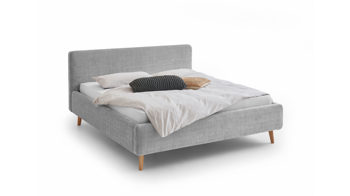 Das Polsterbettgestell Mattis begeistert durch die elegante Optik sowie die hervorragende Material- und Verarbeitungsqualität. Es kombiniert einen grauen Chenille-Bezug mit eichefarbenen Holzfüßen. Sowohl die Bettseiten als auch das Polsterkopfteil sind glatt bezogen. Letzteres lädt Sie ein, sich anzulehnen, wenn Sie abends im Bett vor dem Schlafen noch fernsehen oder in einem Buch lesen.
