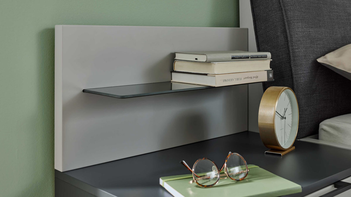 • Die Abbildung zeigt ein Wohnbeispiel, welches auch Dekoration sowie separat erhältliches Zubehör enthält. Im Lieferumfang enthalten ist ein Bettgestell.