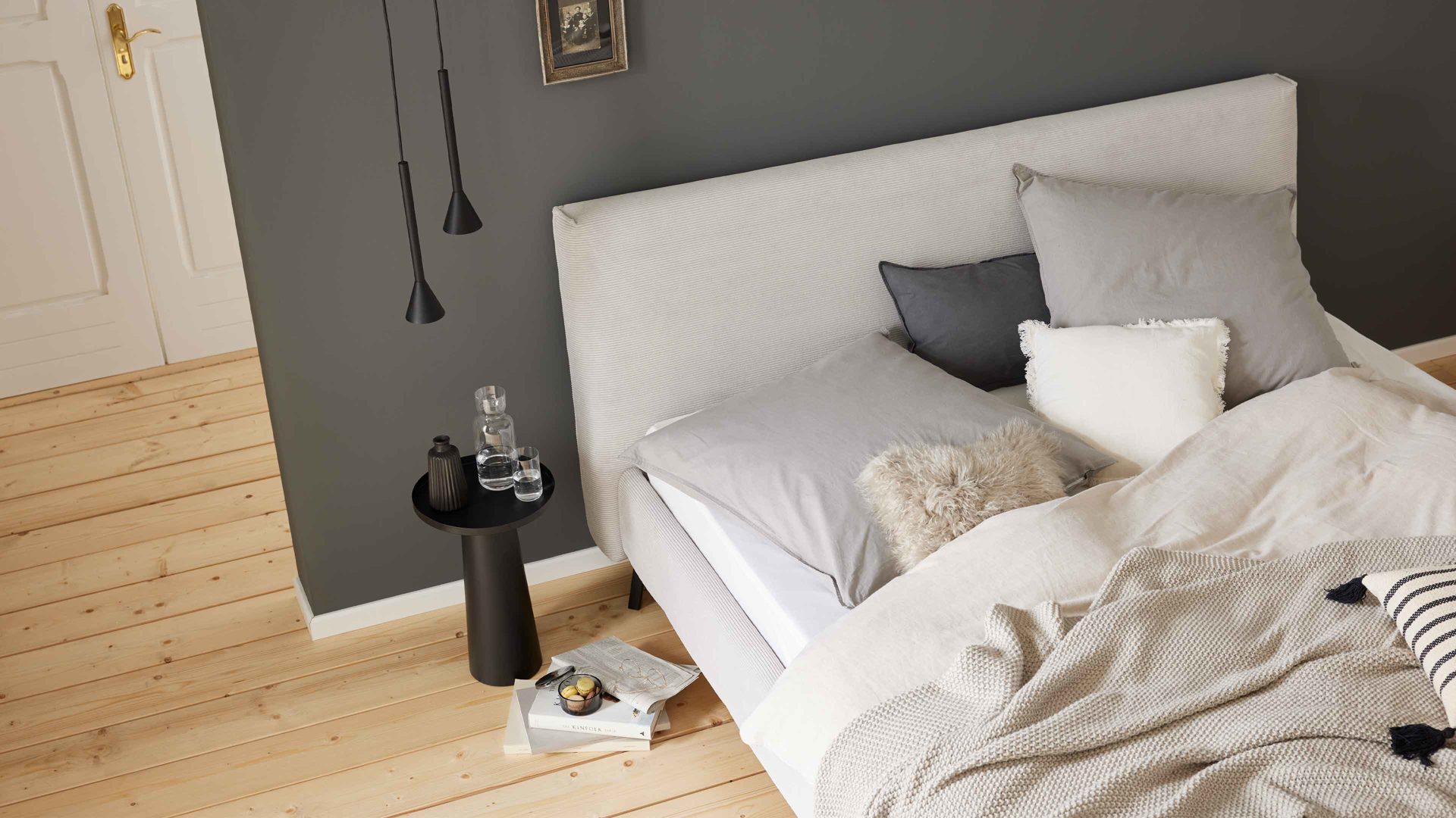 • Die Abbildung zeigt ein Wohnbeispiel, welches auch Dekoration sowie separat erhältliches Zubehör enthält. Im Lieferumfang enthalten ist ein Polsterbettgestell.