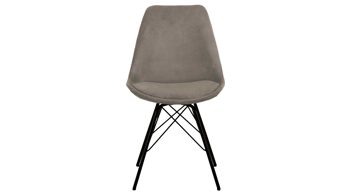 Als stabile, dabei aber wunderbar filigran designte Basis fungiert ein mattschwarz pulverbeschichtetes Stahldrahtgestell. Darauf befindet sich eine beige Sitzschale aus robustem Kunststoff. Sie ist rundherum mit Feincord bezogen, ebenfalls in warmem Beige. Der angesagte Feincordbezug überzeugt sowohl qualitativ als auch optisch und haptisch.