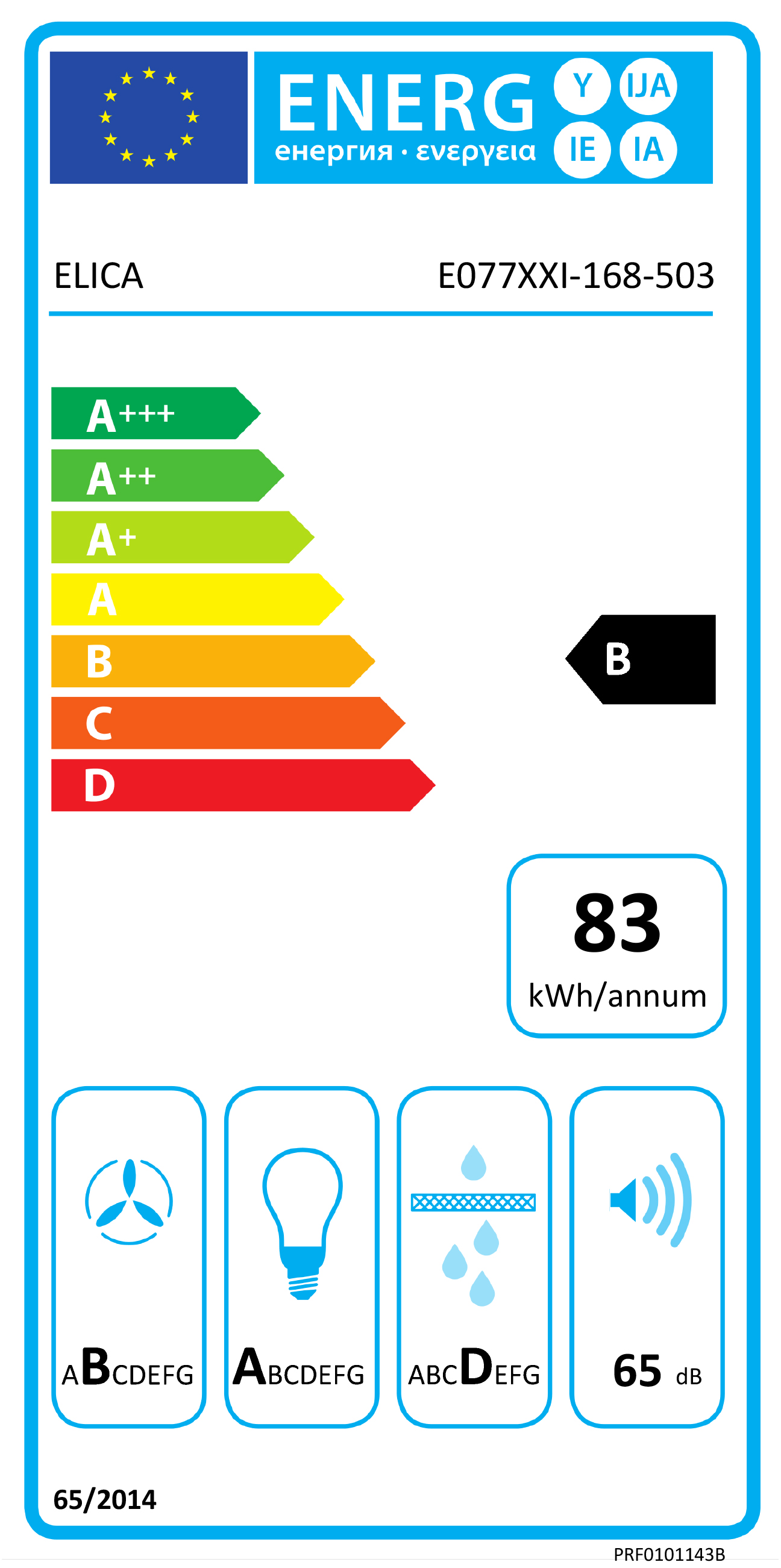 Energieeffizienzklasse B (Spektrum A+++ bis D)
