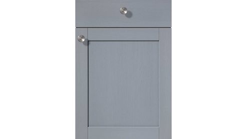 Die nobilia® Einbauküche Frame überzeugt mit steinblauen Lacklaminat-Rahmenfronten in Holzstruktur und verbindet klassischen Charme mit moderner Klarheit. Steingraue Korpusse und dezente Knopfgriffe unterstreichen den stilvollen Landhaus-Charakter.