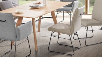 vier Funktions-Esstische in Furnier oder Holz-Nachbildung lieferbar
