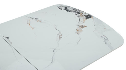 Sintered Stone Tischplatte in weißer Marmoroptik,