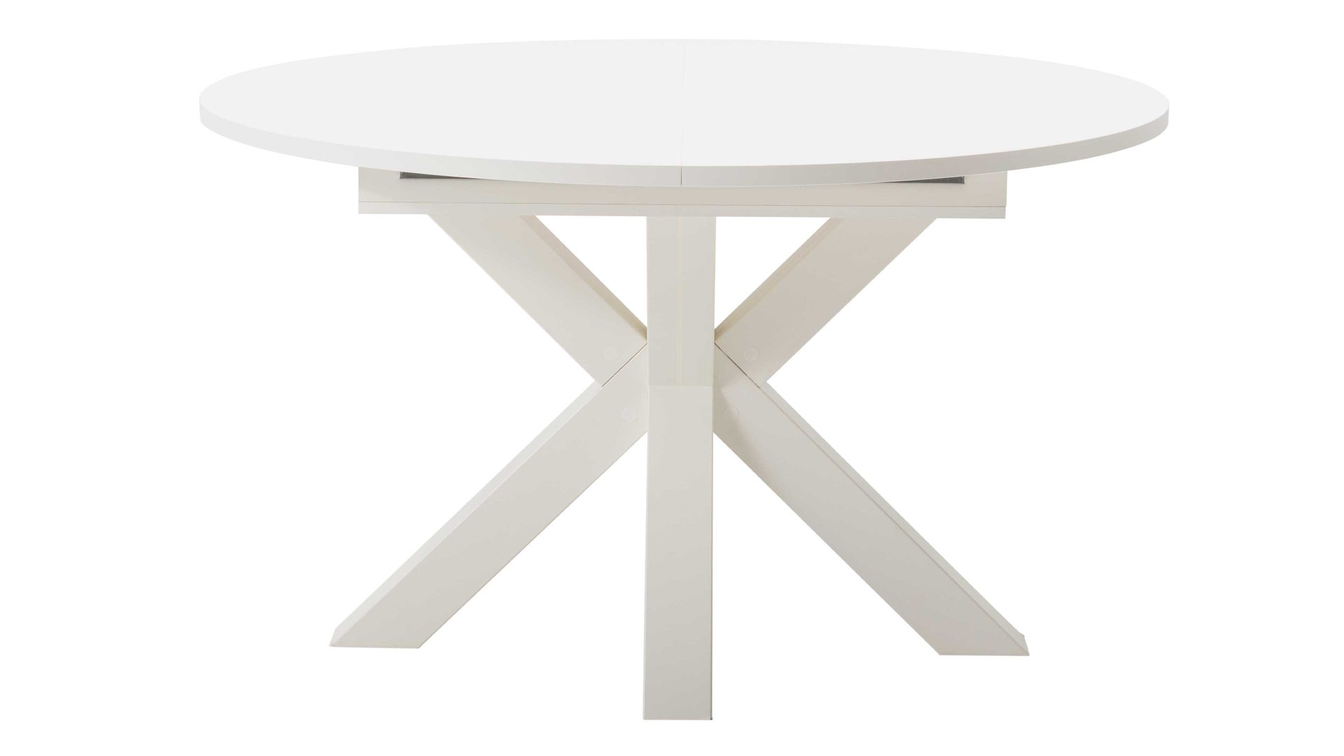 Dieser Auszugtisch zeichnet sich durch ein modernes und zugleich rustikales Design aus. Er kombiniert eine ausziehbare, mattweiß lackierte Tischplatte mit einem ebenfalls mattweißen Sterngestell. Durch die robusten Materialien und die hohe Verarbeitungsqualität ist der Funktionstisch enorm stabil und sehr langlebig. Seine Maße belaufen sich auf ca. 130 - 170 x 75 x 130 cm (LxHxT). Demnach können hier bis zu 6 Personen bequem zusammen essen.