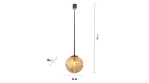 Auch einen Essbereich illuminiert die schöne Pendellampe hervorragend. Dank ihres Durchmessers von ca. 30 cm und einer Kabellänge von ca. 150 cm platzieren Sie die Hängelampe beliebig im Raum. Um Ihre Räumlichkeiten stimmungsvoll auszuleuchten, setzen Sie einfach ein Leuchtmittel mit einer E27-Fassung und maximal 60 Watt ein, das sich für die Energieeffizienzklasse A bis G eignet, und profitieren Sie zudem von der Leuchtenserie, zu der dieses Modell gehört.