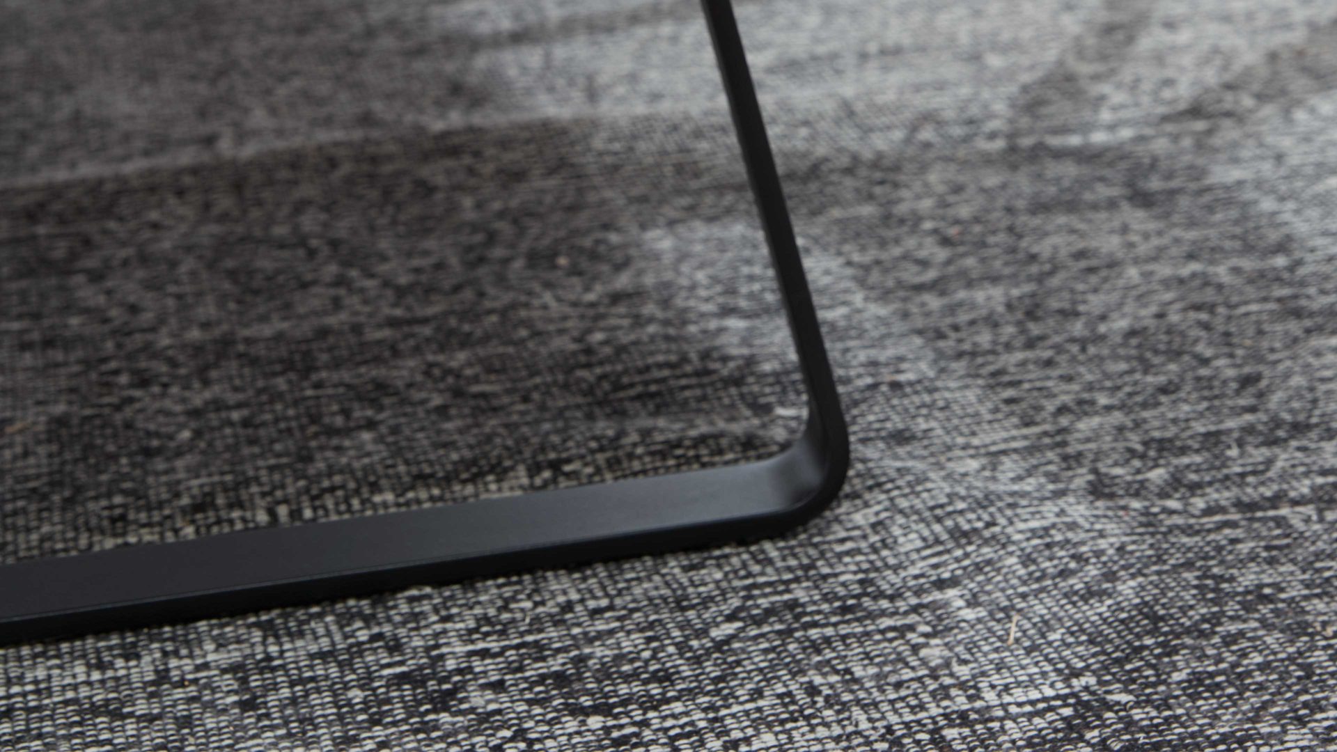 Als Basis fungieren ein mattschwarz pulverbeschichtetes Flachkufengestell mit Struktur sowie ein UV-beschichtetes Wildeichen-Plateau mit Öl-Effekt. Letzteres sorgt für eine natürlich-warme Note. Die beiden Sitzeinheiten der außergewöhnlichen Esszimmerbank sind innen mit dunklem Leder bezogen - außen weisen sie einen Lodenbezug auf.