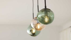 Mit der Hängelampe aus der Interliving Leuchten Serie 9350 bringst du ein echtes Design-Statement in deinen Wohnraum. DRei organisch geformte, matte Glas-Lampenschirme in den Farbtönen Amber, Grün und Rauch sorgen für ein lebendiges Lichtspiel, während der mattschwarze Metallsockel und die schwarzen Textilkabel der Pendelleuchte einen modernen Look verleihen.