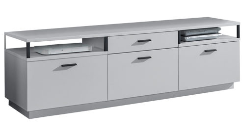 dreitüriges Lowboard mit einer Schublade und zwei offenen Fächern