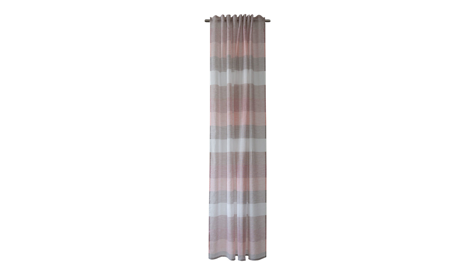 In zarten abgestimmten Rose-Natur Tönen kommt die HOMING Gardine Kadin mit verdeckter Schlaufe daher. Die feine Leinenstruktur bringt ein Stück Natur mit ins Haus und die farbig aufeinander abgestimmten Querstreifen setzen Akzente am Fenster. Diese Polyesterqualität bezeichnet eine Chemiefaser, bei der es sich um ein sehr pflegeleichtes Material handelt. Die Ware ist sowohl formbeständig als auch strapazierfähig. Außerdem läuft sie bei einer Wäsche bis maximal 30 Grad nicht ein und hat eine hohe Lichtbeständigkeit. Der pflegeleichte Schlaufenschal hat Maße von ca. 140 x 245 cm (BxL) und ist in weiteren Farben im Shop bestellbar.