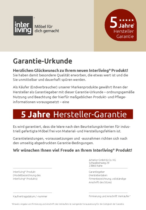 Wie alle Möbel der Serie überzeugt auch dieses Modell mit geprüfter Qualität und wird mit 5 Jahre Herstellergarantie geliefert – für langlebige Freude an deinem neuen Lieblingsmöbel.