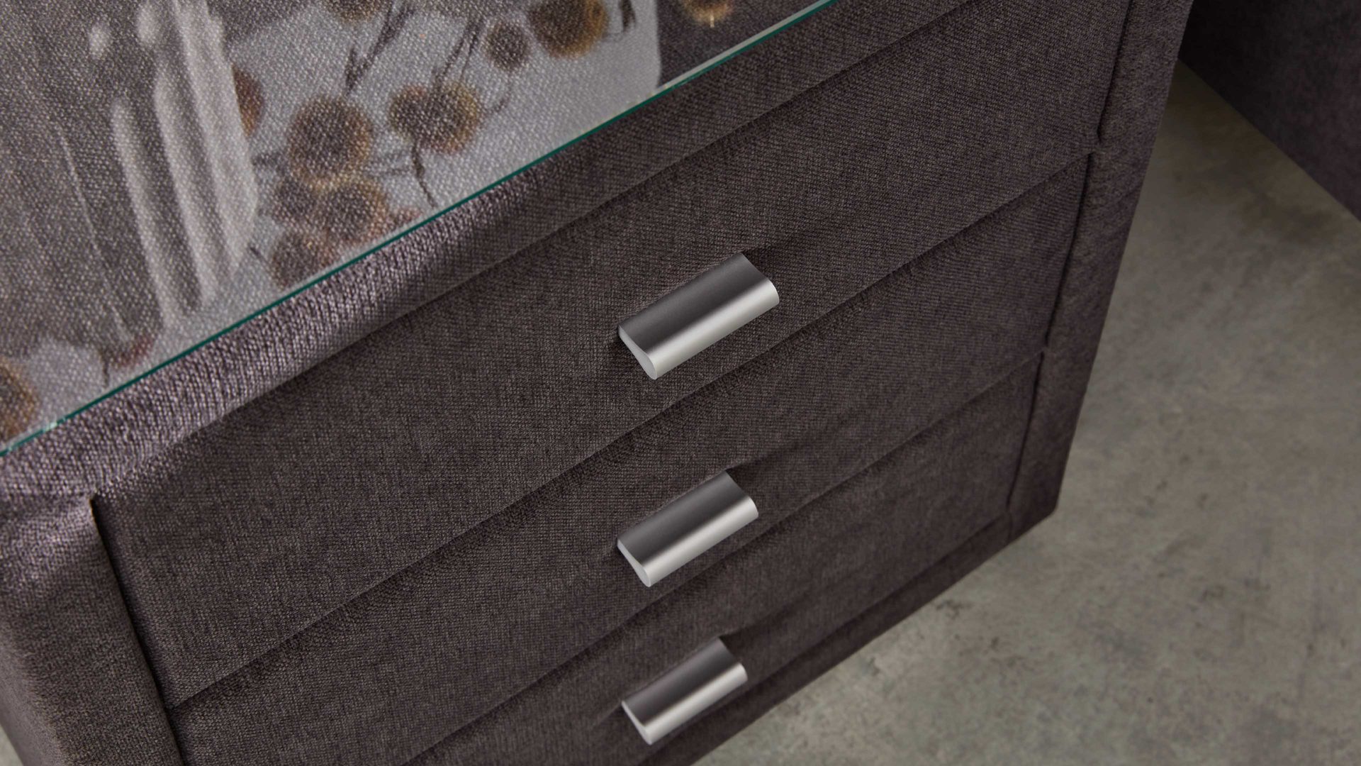 dunkelgrauer Stoffbezug ENF 09 - drei Schubladen