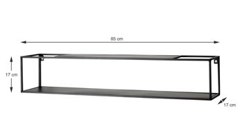 Die Maße des kleineren Regals betragen ca. 75 x 14 x 17 cm (LxHxT), während sich die des größeren auf ca. 85 x 17 x 17 cm (LxHxT) belaufen. Praktischen Stauraum für Deko, CDs und sonstige Gegenstände bieten sowohl die obere als auch die untere Platte beider Wandboards.