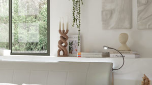 kieselgraues Kunstleder, kombiniert mit Nordic Eiche Nachbildung und schieferfarbenen Metall-Winkelfüßen