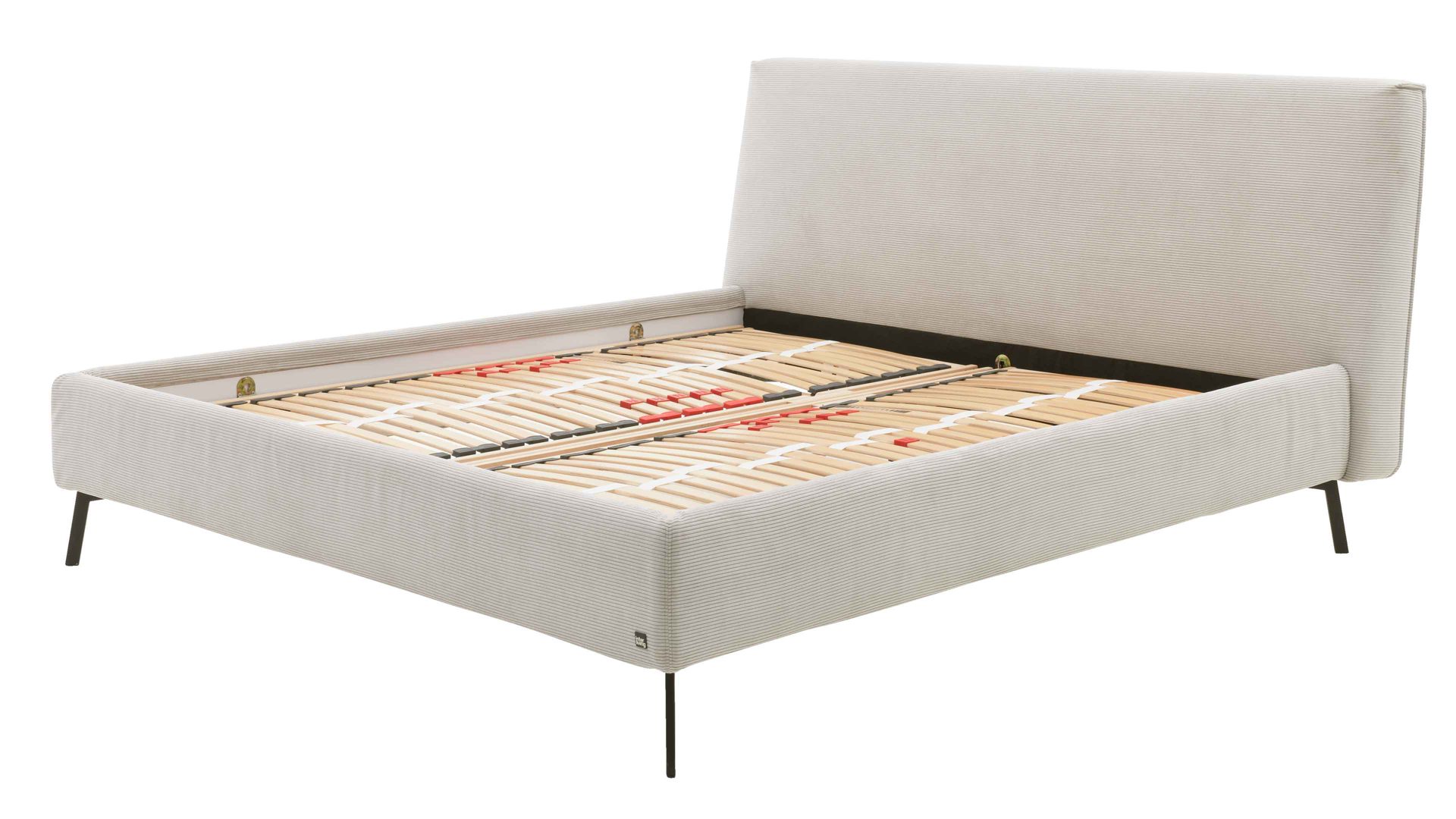 Ein besonderes Gestaltungselement ist das Polsterkopfteil, das mit einem eleganten umlaufenden Keder versehen ist und über eine Rückseite im Originalstoff verfügt. Dadurch macht das Bett auch frei im Raum platziert eine hervorragende Figur. Der glatt bezogene Bettrahmen überzeugt mit einer vierfach höhenverstellbaren Einlegetiefe, sodass sich das Bettgestell optimal an verschiedene Matratzen- und Lattenrostsysteme anpassen lässt.
