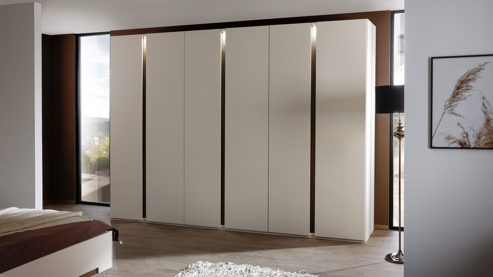 Schlafzimmerschrank mit sechs leise schließenden Türen und drei Spots