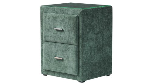 Der moosgrüne Chenillebezug verleiht der Nachtkonsole eine warme, wohnliche Ausstrahlung und sorgt gleichzeitig für eine angenehme Haptik. Die elegante Klarglasauflage setzt einen modernen Akzent und schützt die Oberfläche – ideal für Lampe, Bücher oder dein Smartphone.