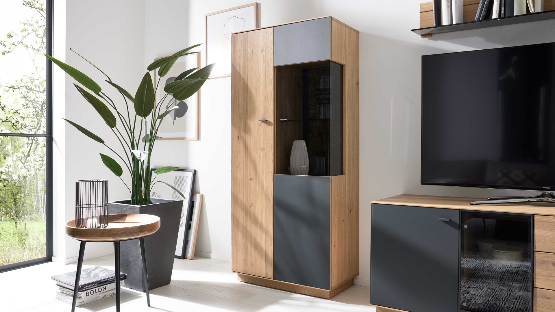 Natürlich, edel und funktional – die Vitrine aus der Interliving Wohnzimmer Serie 2029