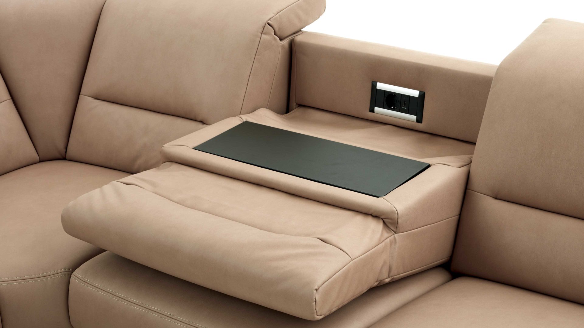Als zusätzliches Highlight sind in den Rückenteil des Sofas Funktionsbuchsen - genauer gesagt eine Steckdose und ein USB-Anschluss - integriert. Somit können Sie hier auch bequem Ihr Mobiltelefon aufladen oder Ihr Notebook anschließen.