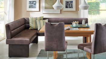 Die Polster-Eckbank bietet Ihnen mehrere Individualisierungsmöglichkeiten: Sie ist in vielen Bezugfarben lieferbar. Zudem sind drei Gestellfarben erhältlich. Wie Sie Bezug und Gestell aufeinander abstimmen, bleibt Ihnen überlassen. Darüber hinaus steht Ihnen die in allen Belangen überzeugende Eckbank auch spiegelbildlich sowie in einer weiteren Größe zur Wahl. Ergänzend können Sie passende Polsterbänke, Stühle und Tische aus dem Esszimmerprogramm Lagos bestellen.