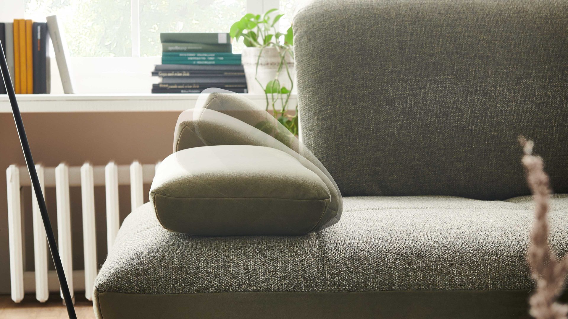 Durch die manuelle Rasterverstellung lässt sich die Armlehne des jeweiligen Polstermöbels in die eigene Wunschposition bringen. Je nach Einstellung können Sie Ihren Arm höher oder tiefer ablegen. Zudem empfiehlt sich das geneigte Armteil als Kopfablage bei einem entspannten Nickerchen auf dem Sofa.
