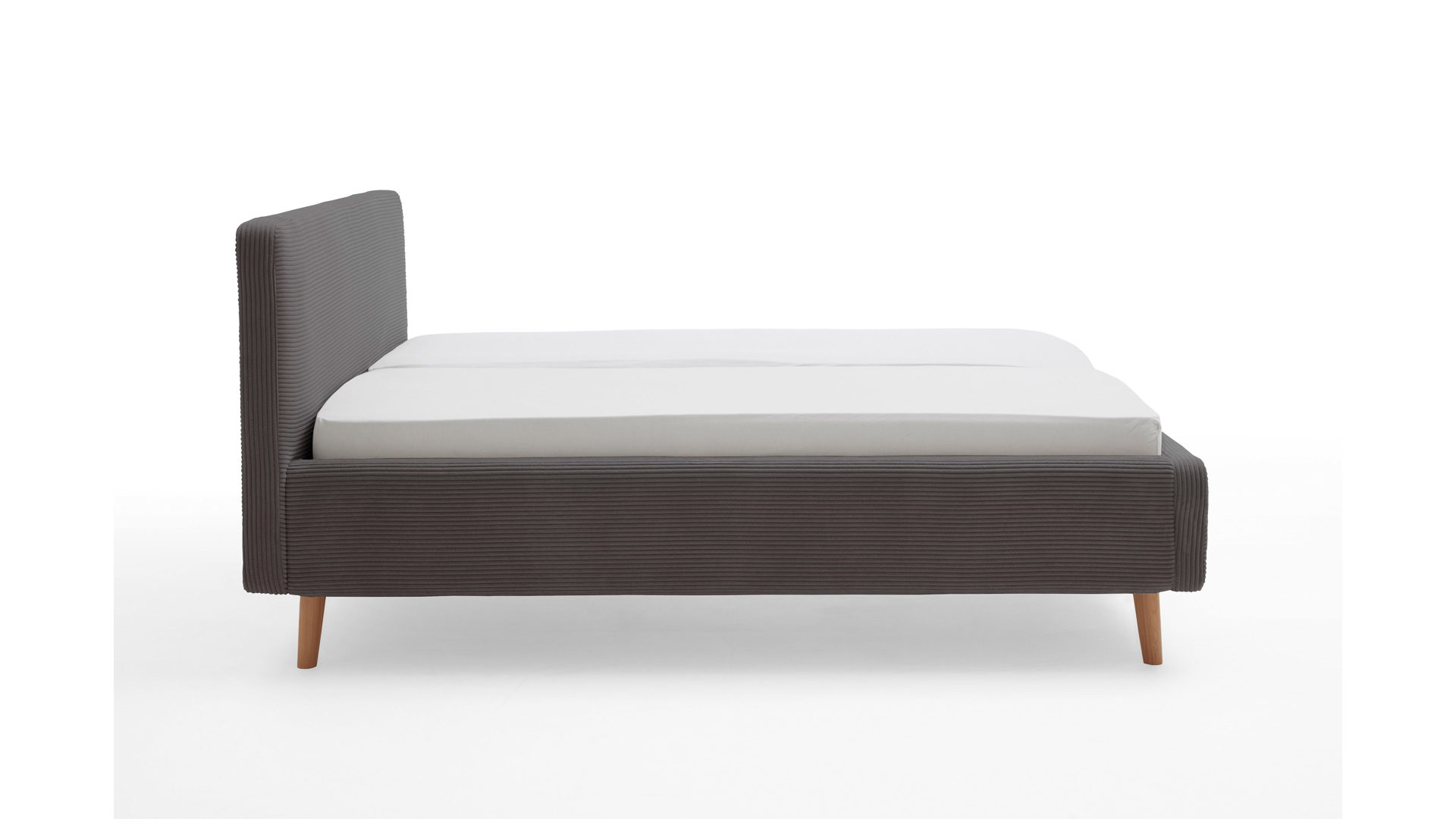 Das Polsterbettgestell Mattis begeistert durch die elegante Optik sowie die hervorragende Material- und Verarbeitungsqualität. Es kombiniert einen grauen Breitcord-Bezug mit eichefarbenen Holzfüßen. Sowohl die Bettseiten als auch das Polsterkopfteil sind glatt bezogen. Letzteres lädt Sie ein, sich anzulehnen, wenn Sie abends im Bett vor dem Schlafen noch fernsehen oder in einem Buch lesen.
