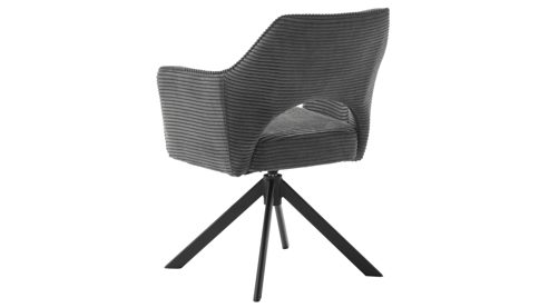 anthrazitfarbener Breitcordbezug und rundes, konisch zulaufendes, mattschwarzes Metallgestell