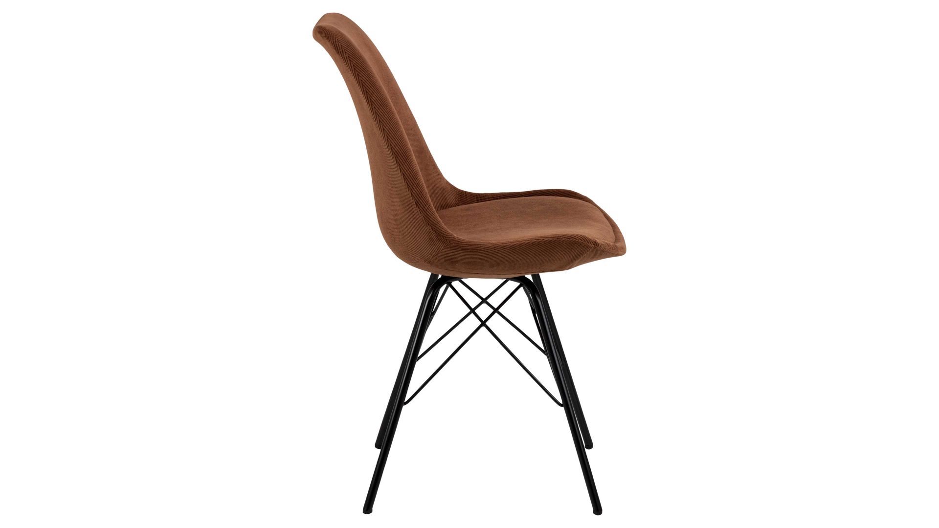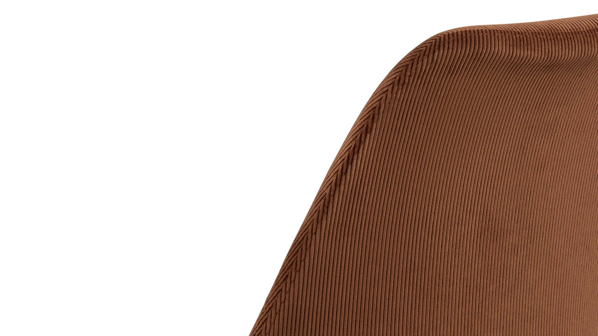 Als stabile, dabei aber wunderbar filigran designte Basis fungiert ein mattschwarz pulverbeschichtetes Stahldrahtgestell. Darauf befindet sich eine kupferfarbene Sitzschale aus robustem Kunststoff. Sie ist rundherum mit Feincord bezogen, ebenfalls in Kupfer. Der angesagte Feincordbezug überzeugt sowohl qualitativ als auch optisch und haptisch.