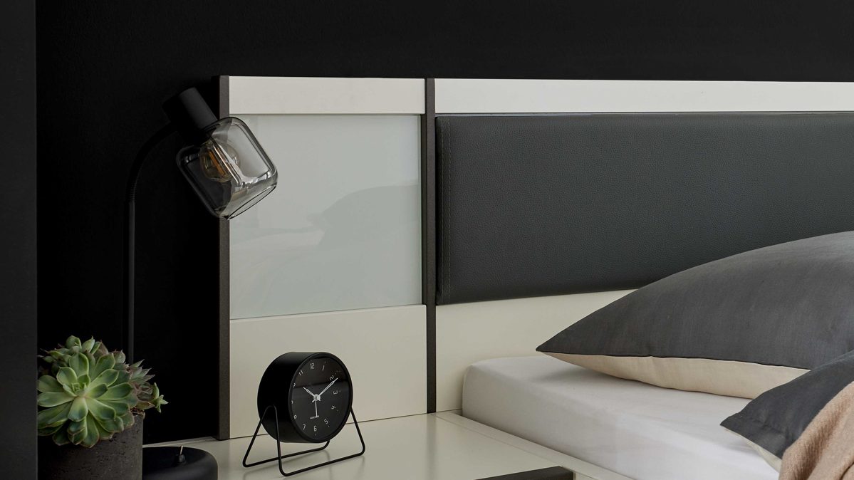 Perfekt wird es mit passenden Beimöbeln wie Nachtkonsolen mit einem oder drei Auszügen, die ideal zum Paneel-Set passen. Auch Futonbettgestelle mit vierfach verstellbarer Liegehöhe und variablen Kopf- und Fußteilen – wahlweise mit weißer Glaseinlage oder Polster – lassen sich harmonisch einfügen.