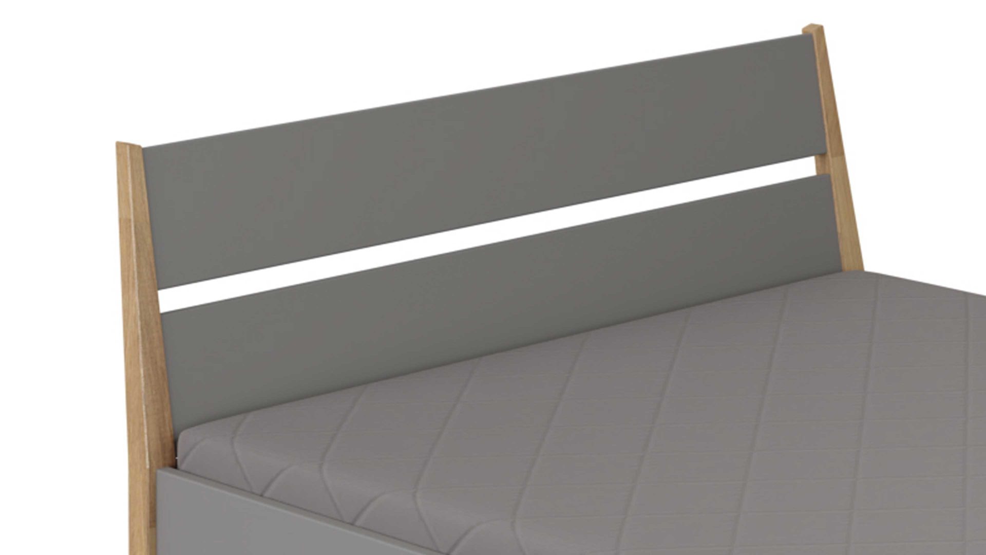 Das hochwertige PAIDI Bettgestell Sten kombiniert massive Eiche mit schiefergrauen Melaminoberflächen. Letztere zeichnen sich durch ihre Lichtechtheit sowie die besonders ausgeprägte Kratz- und Stoßfestigkeit aus. Überdies sind sie sehr pflegeleicht. Die massive Eiche begeistert mit ihrer extremen Robustheit und Stabilität. Zudem strahlt sie warme Natürlichkeit aus. Der Holzton harmoniert wunderbar mit dem Schiefergrau. Zusammen sorgen die Nuancen für eine moderne und elegante Optik.