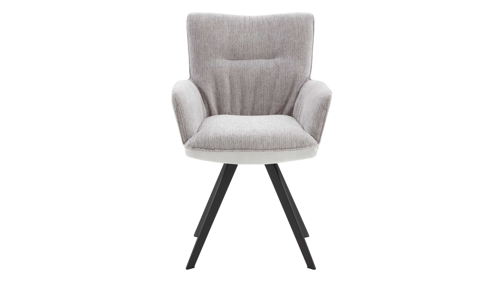 Der moderne Schalensessel 9022-04-959 aus der Interliving Esszimmer Serie 5111 kombiniert ein schwarzes Eisen-Stativgestell mit einer stilvollen platinfarbenen Bezugkombination.