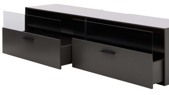Zwei Schubladen mit Glaseinsatz im oberen Bereich bieten dir praktischen Stauraum für Technik, Zubehör oder Wohnaccessoires. Durch den integrierten Kabeldurchlass bleibt die Kabelführung deiner Geräte stets ordentlich – ideal für ein aufgeräumtes, modernes Wohnambiente. Mit Maßen von ca. 180 x 43 x 40 cm (L/BxHxT) überzeugt das Medienmöbel mit schlanker Form und großzügigem Stauraum. Es wird fertig montiert geliefert und ist bereit zur direkten Wandmontage – für ein schwebendes, elegantes Erscheinungsbild.