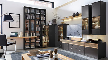 Funktionale Highlights sind der gedämpfte Frontenanschlag und der Softeinzug aller Schubladen, der ein angenehm leises Schließen ermöglicht. Gegen Mehrpreis erhalten Sie einige Wohnmöbel der Kombination mit energieeffizienter Beleuchtung. Durch den Typenplan mit einer großen Farb- und Typenauswahl können Sie das genaue Design der Wohnwand individuell an Ihren Geschmack anpassen. Auch weitere Artikel der Serie stehen Ihnen zur Verfügung - für ein rundum harmonisch eingerichtetes Wohnzimmer. Diese Elemente finden sie über die Produktnummer 483582-010.