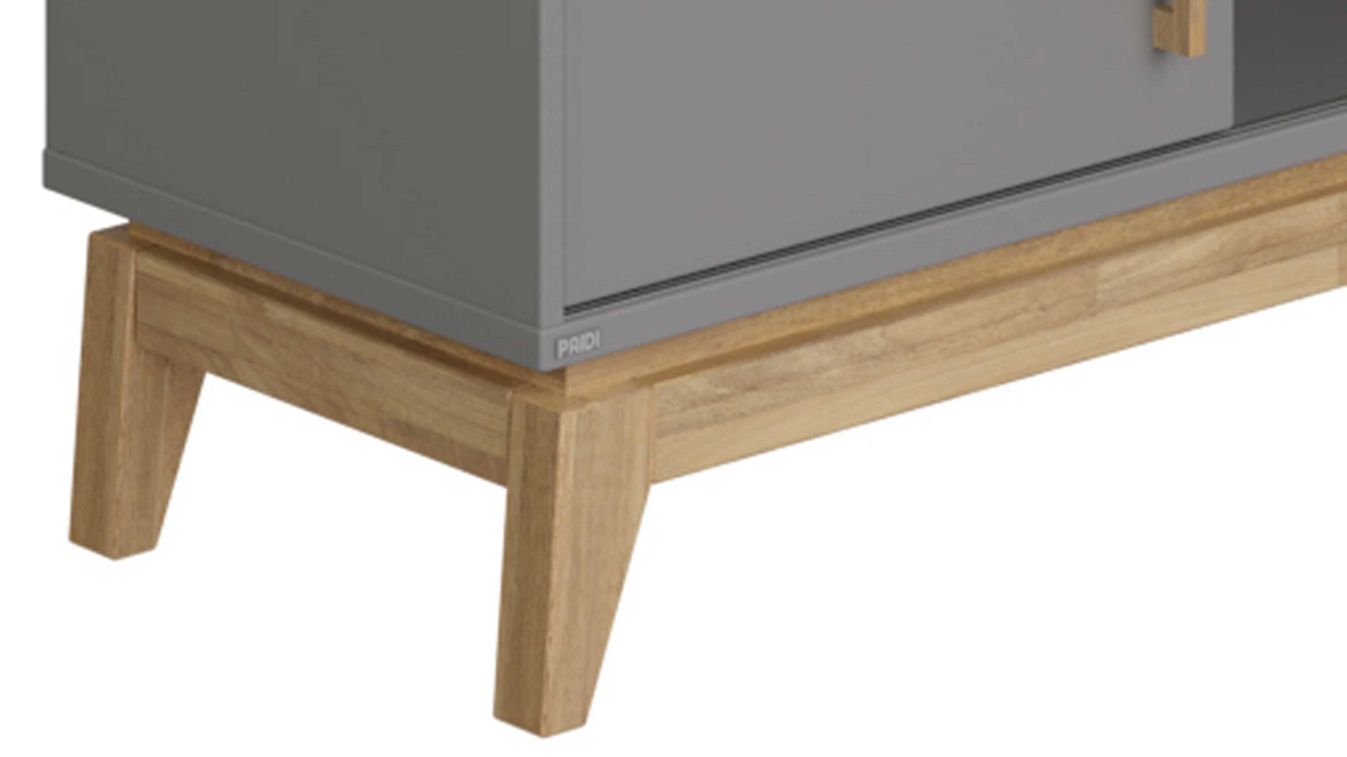 Das hochwertige PAIDI Stauraumelement Sten kombiniert massive Eiche mit schiefergrauen Melaminoberflächen. Letztere zeichnen sich durch ihre Lichtechtheit sowie die besonders ausgeprägte Kratz- und Stoßfestigkeit aus. Überdies sind sie sehr pflegeleicht. Die massive Eiche begeistert mit ihrer extremen Robustheit und Stabilität. Zudem strahlt sie warme Natürlichkeit aus. Der Holzton harmoniert wunderbar mit dem Schiefergrau. Zusammen sorgen die Nuancen für eine moderne und elegante Optik.