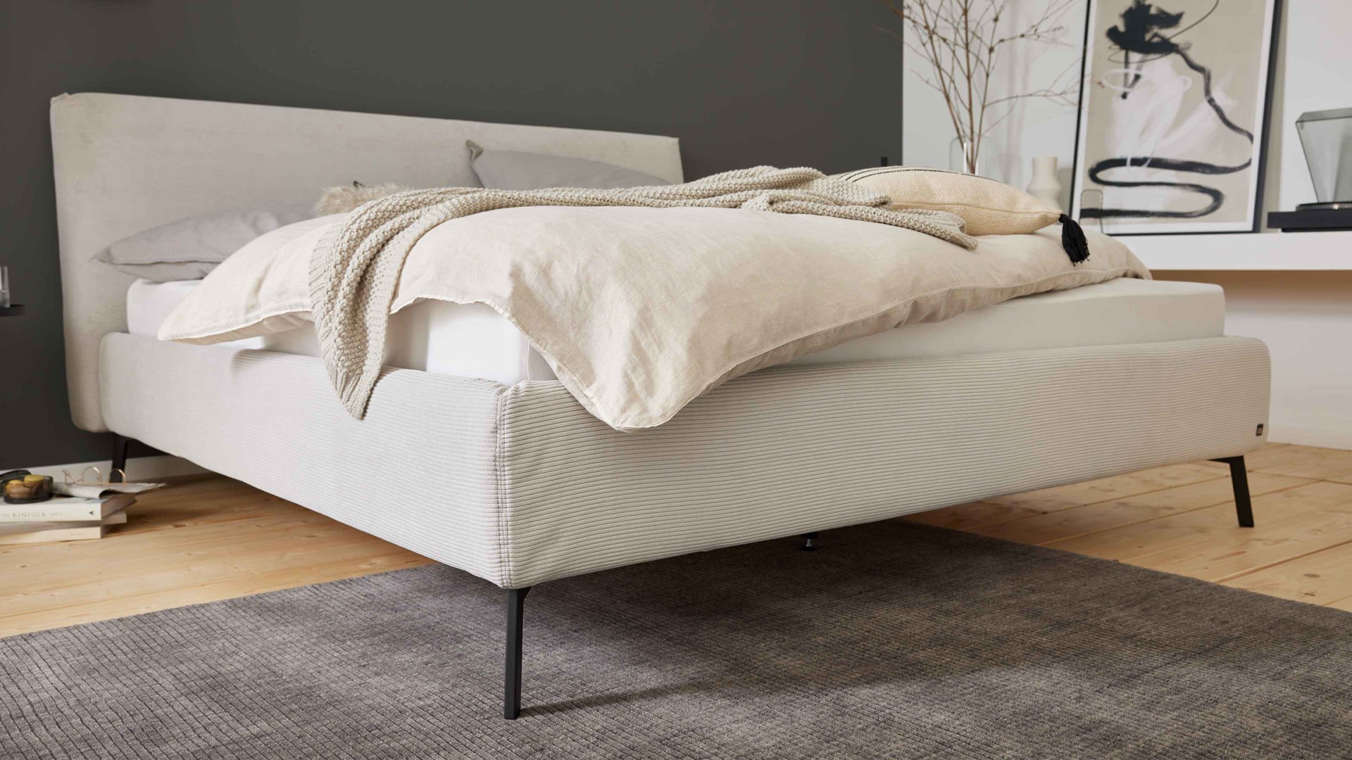 • Die Abbildung zeigt ein Wohnbeispiel, welches auch Dekoration sowie separat erhältliches Zubehör enthält. Im Lieferumfang enthalten ist ein Polsterbettgestell.