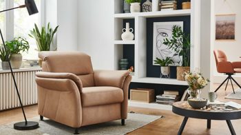 Das Programm bietet eine beeindruckende Typen- und Bezugvielfalt, wobei alle Rückseiten im Originalstoff bezogen sind und die Bezüge wahlweise mit oder ohne Kontrastnaht umgesetzt werden können. Überdies stehen sieben Fußvarianten, zwei preisgleiche Sitzhöhen und mit Kaltschaum, Federkern und - gegen Aufpreis - Boxspring drei Sitzqualitäten zur Wahl.