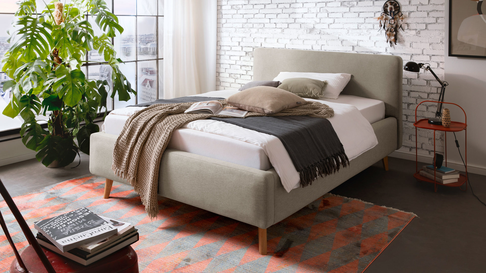taupefarbenes Flachgewebe Aspen 23 & Holzfüße - Liegefläche ca. 180 x 200 cm