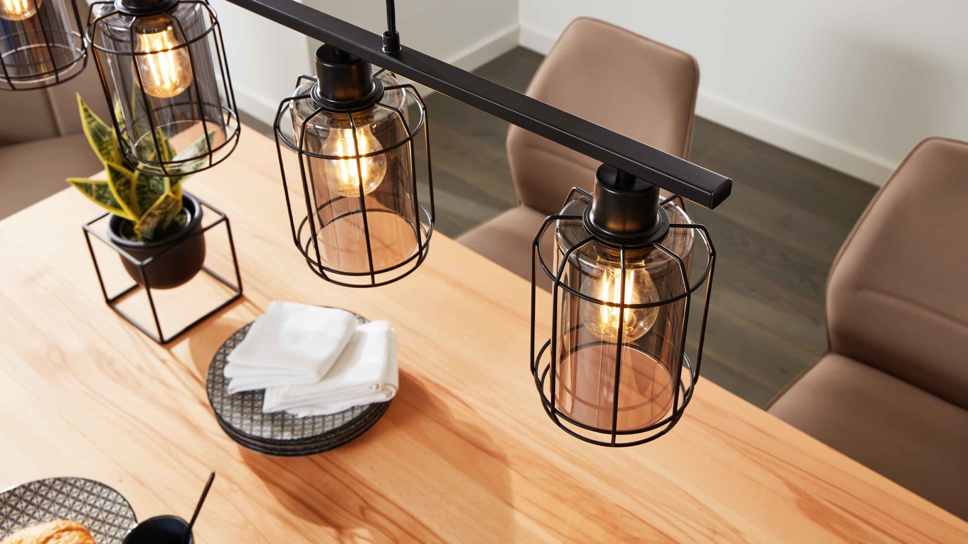 Die Pendelleuchte überzeugt durch ihr markantes, gleichzeitig edles Erscheinungsbild. Ob über dem Esstisch oder einer Kücheninsel – sie setzt ein echtes Statement und bringt wohnliche Wärme in moderne Räume.
