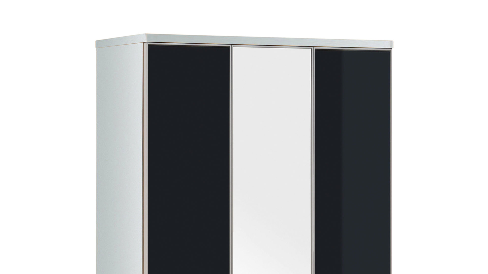 Modernes Design und Funktionalität gehen hier Hand in Hand. Der Garderobenschrank hat einen weiß lackierten Korpus und anthrazitfarbene Glasfronten mit einer Spiegelauflage. Hinter der linken Holztür verstecken sich sieben Schuhgitter, die Stiefel, High Heels und Turnschuhe geschmackvoll aufbewahren, auf der anderen Seite erwartet Sie ein großes Fach, in dem Sie Jacken und Mäntel aufbewahren können.