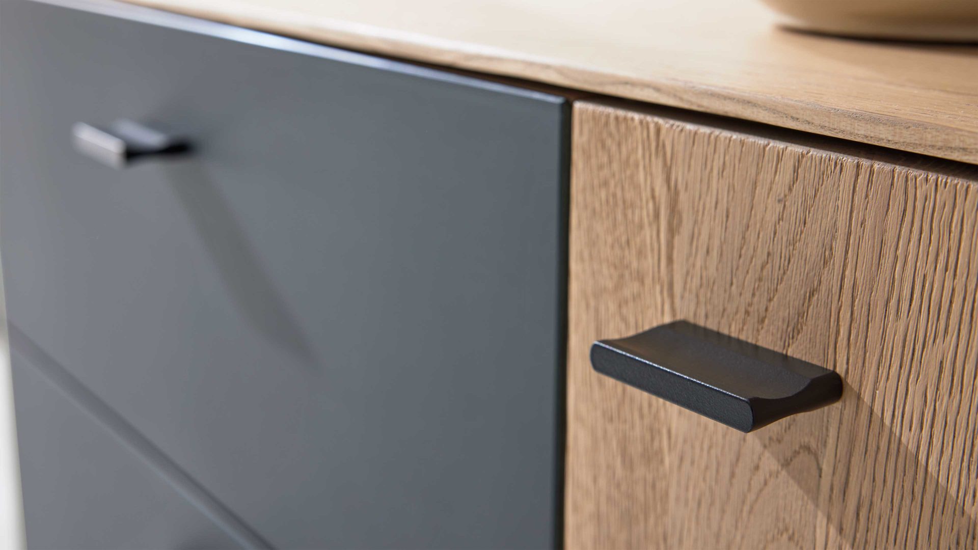 Das Sideboard aus der Interliving Wohnzimmer Serie 2025 kombiniert massive Wildeiche-Fronten mit einem Korpus in Wildeiche-Nachbildung und bringt damit Wärme und Natürlichkeit in dein Zuhause. Besondere Akzente setzen die Rückwände aus echtem Kork, Parsolglas in satinmattem Anthrazit und anthrazitfarbene Metallgriffe mit feinstrukturierter Lackierung. Diese Details verleihen dem Möbelstück eine elegante, zeitgemäße Note und machen es zum echten Hingucker.