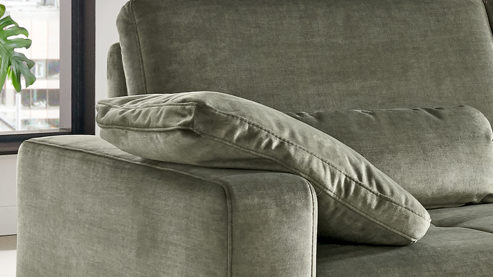 Es kombiniert einen Mikroveloursbezug in trendigem Olivgrün mit mattschwarzen Winkelfüßen aus robustem Metall. Die hochwertigen Materialien und harmonisch aufeinander abgestimmten Farben verleihen der Couch eine überaus elegante und gemütliche Ausstrahlung. Neben der einladenden Optik begeistert auch die exzellente Verarbeitungsqualität.