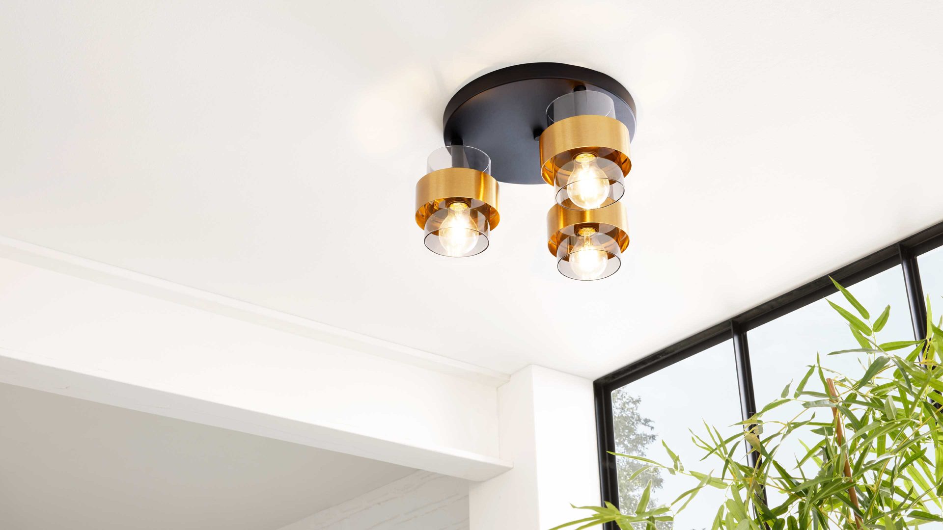 Die Deckenleuchte ist für drei Leuchtmittel mit E27-Fassung und einer jeweiligen Leistung von bis zu 60 Watt ausgelegt. Da die Leuchtmittel nicht im Lieferumfang enthalten sind, kannst du die Lichtfarbe und Intensität ganz nach deinen Vorstellungen wählen. Bedient wird die Leuchte bequem über den Wand-Lichtschalter.
