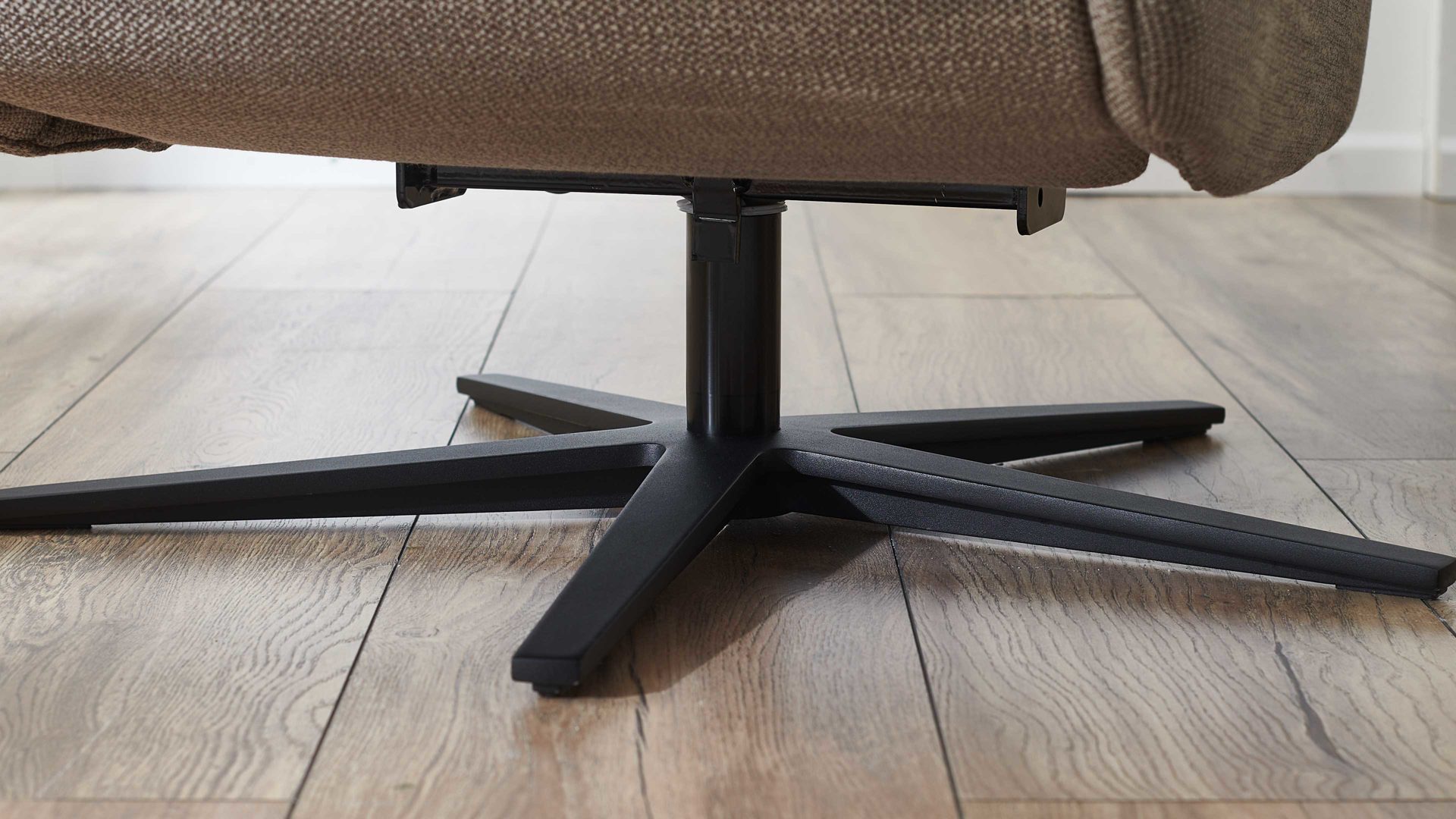Mit dem taupefarben melierten Flachgewebebezug und dem mattschwarzen Sternfuß aus Metall strahlt der COMFORT SMART Relaxsessel Viro moderne Eleganz aus.