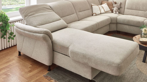Über zwei seitlich links im Sitz angebrachte Touchbuttons lässt sich das Sofaelement stufenlos bis zur Liegeposition verstellen. Dadurch können Sie beim Lesen, Fernsehen oder puren Entspannen eine besonders komfortable Haltung einnehmen und einfach relaxen.