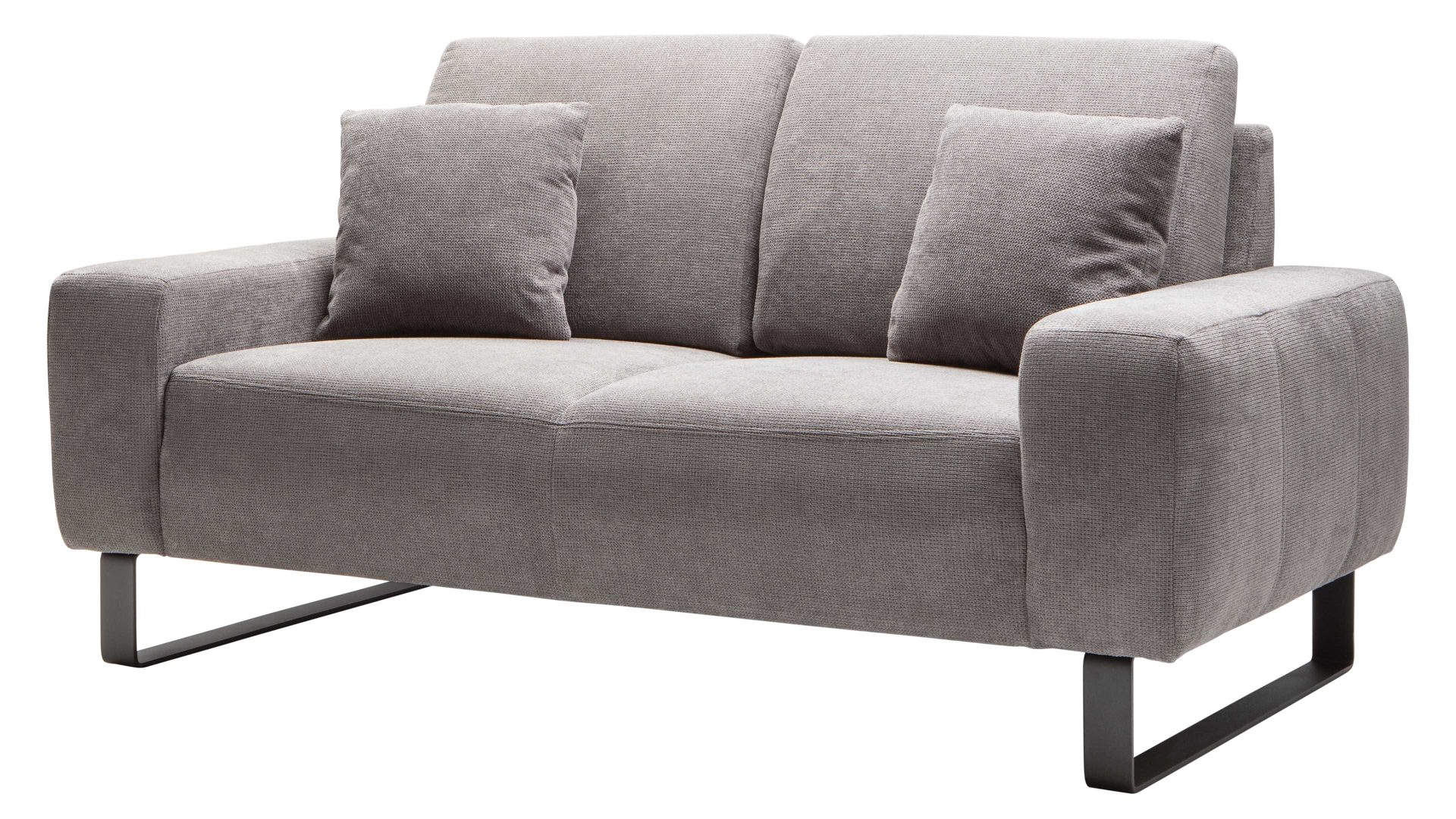 Der moderne 2-Sitzer Dana kombiniert einen stilvollen steinfarbenen Stoffbezug mit mattschwarz lackierten Metallkufen und strahlt schlichte Eleganz aus. Dadurch fügt er sich in unterschiedliche Wohnstile stimmig ein.